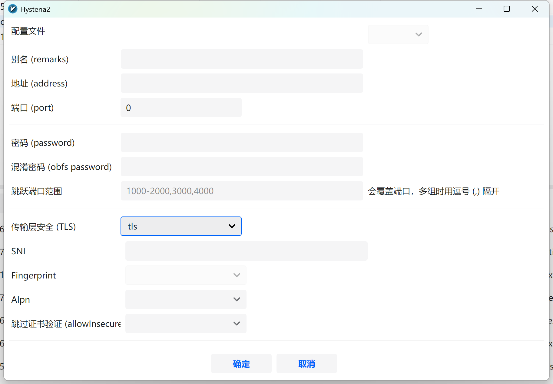点击配置文件->添加 hysteria2 配置文件,打开配置界面